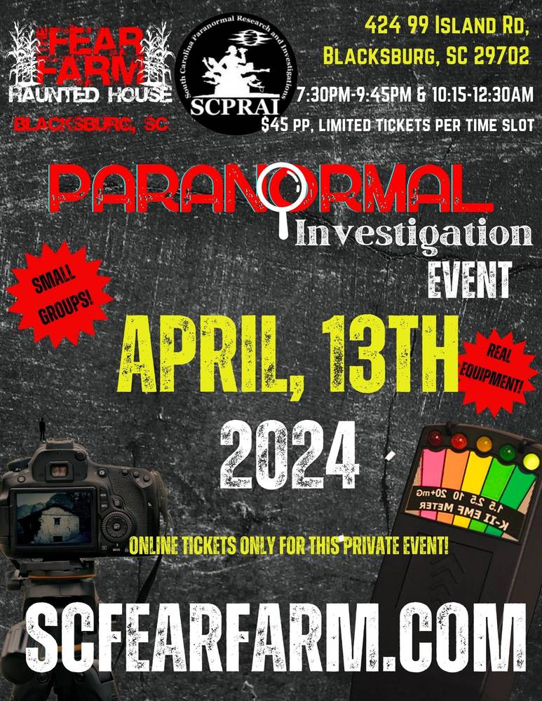 Are you ready to embark on a spine-chilling adventure like no other? Prepare yourself for an evening of heart-pounding paranormal exploration at The Fear Farm haunted house property on our truly haunted farm. This is not your ordinary haunted house experience, but an intense journey for those who dare to seek the supernatural. Your ticket grants access to an exclusive small group investigation where you'll personally hunt for the unexplained.