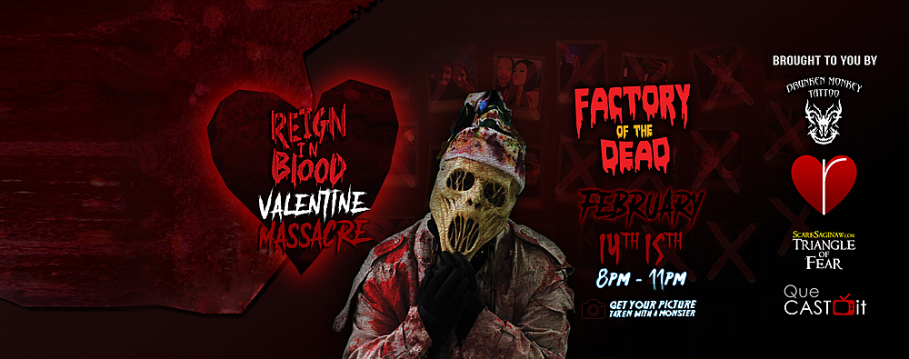 The team behind Factory of the Dead brings a new horrifying, Valentines-themed haunted house unleashing evil Monsters. The cast and crew will transform Haunted House into a horrifying, Valentines-themed Massacre.