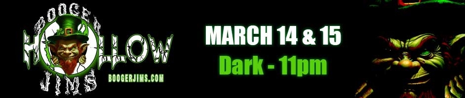 Come with your friends and immerse yourself in the eerie and electrifying atmosphere of Booger Jim's Hollow this St. Patrick's Day. Join us for a terrifyingly fun event, where you can explore our Scary Green themed Haunt and discover the best haunted houses in North Carolina.