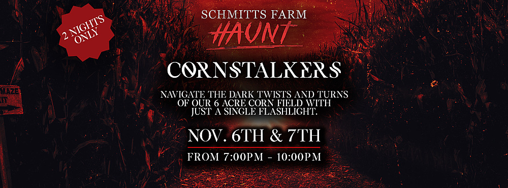 For the first time EVER, The legendary Schmitts Farm 6 acre corn field, previously only open during the day, has been converted into a terrifying night time experience.
