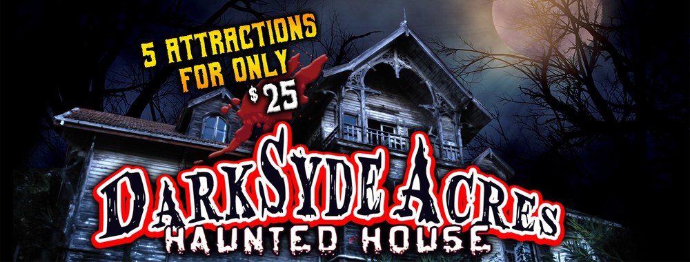 "Prepare for a spine-chilling adventure at DarkSyde Acres Haunted House!