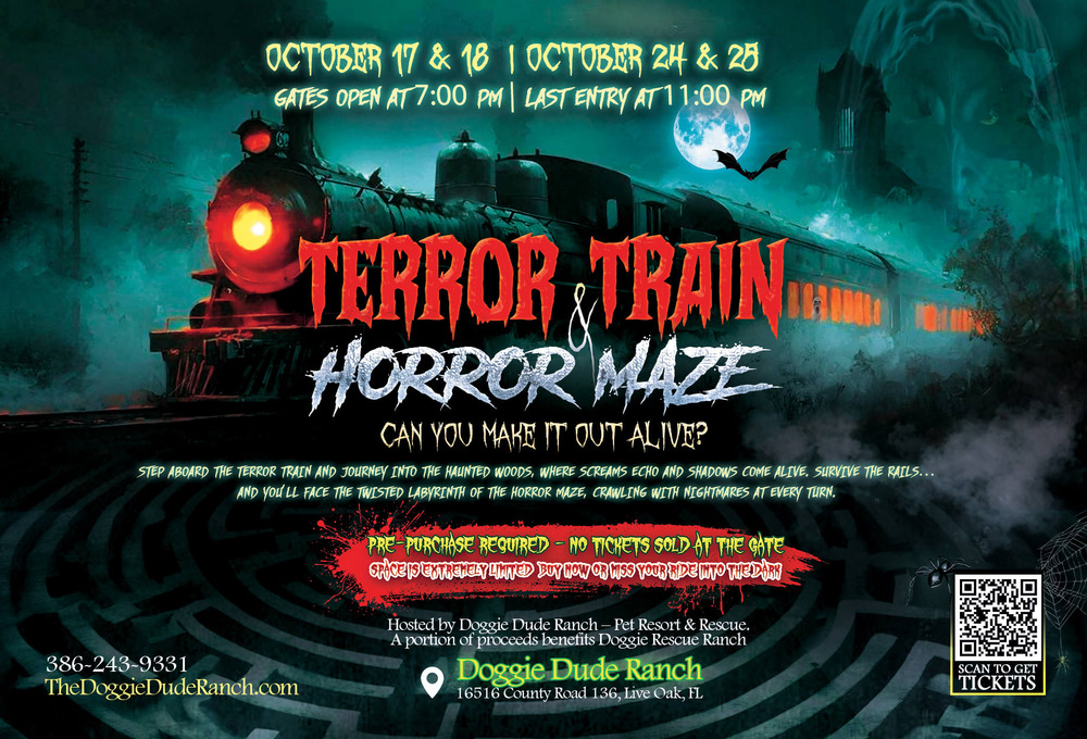 Haunted Train Ride, Halloween Train, Haunted Woods, Haunted Maze, North Florida Haunted Attractions, Suwannee County Halloween, Live Oak FL Events.