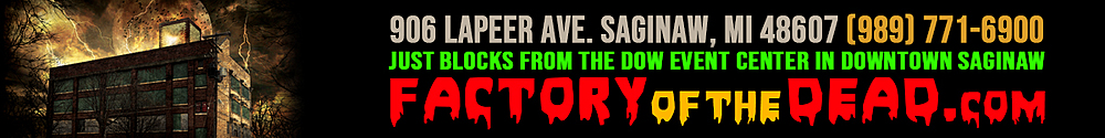 Factory of the Dead Haunted House is located in Saginaw Michigan on the corner of Lapeer Ave. and Roosevelt Austin (aka 2nd St. on google). Get full directions.