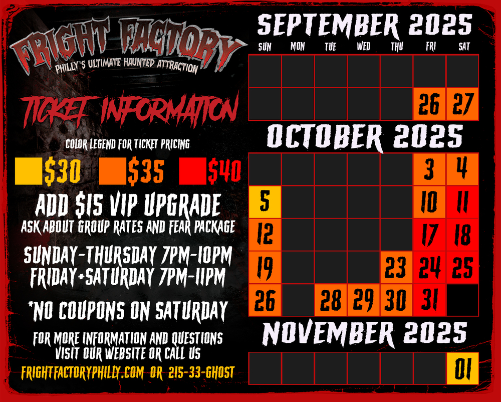 Get ready for the heart-stopping adventure of a lifetime! Philadelphia's Ultimate Haunted House is waiting to unleash its bone-chilling horrors upon you. Explore the dark depths of a 120+ year old Warehouse transformed into a terrifying labyrinth, where nightmares become reality. Brace yourself as you navigate through the Industrial Nightmare, wander the halls of the South Side Sanatorium, and defy the forces of evil within the Fright Factory UnHoly. Will you make it out alive? Only the bravest souls dare to find out.