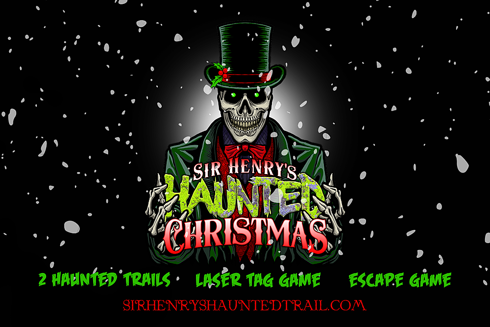 Experience Sir Henry's haunted Christmas event, "Sir Henry's Haunted Christmas"! This spooky, twisted Christmas will feature 2 of our haunted trails themed around creepy Christmas icons. We will also have our 2 escape games and laser tag games operating. Those tickets will need to be purchased on site. Come see your favorite haunted trail adorned for the holidays with all new Christmas frights and spooky characters! This is a 6 night only event starting Dec. 9 and running through Dec. 18.