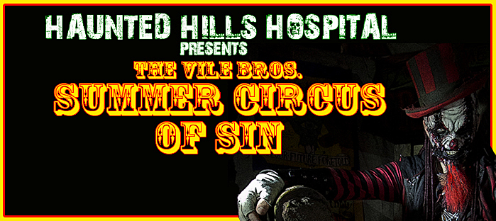 This Summer, get a dose of Halloween in June! Haunted Hills Hospital presents: "The Vile Bros. Summer Circus of Sin!"