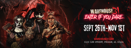 Arrive anytime between our box office opening at 6:30pm and before we close to fully immerse yourself in unforgettable chills. Don't miss your chance to be a part of one of Alabama's most intense haunted attractions - Warehouse31.